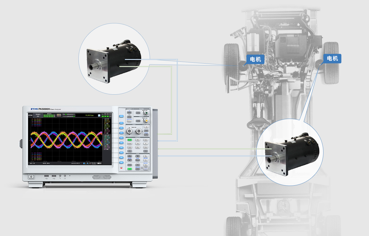 PA5000H功率分析儀可在7張功率板卡中任選一張或幾張升級為電機測試板卡(PA8000、PA5000H均可以選擇多路電機板卡),功率板卡配合電機板卡可以同時對電動汽車內部的變速箱(變頻器)和電機進行聯調測試,用戶將可以更加準確的同時測量電機系統的整體性能。