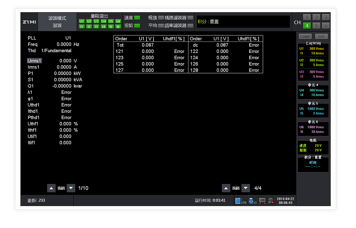 PA6000H功率分析儀帶寬為DC/0.1Hz‐2MHz,由于采用了PLL源倍頻技術,可實現速度更快、動態范圍更廣的諧波測量,在諧波模式下可實現對電壓、電流基波、功率、相位、諧波成分和總諧波失真因數(THD)的準確測試。