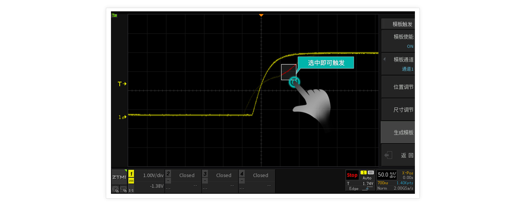 工程師在調試產品的時候,經常會遇到一些難以捕獲的信號。在對信號特性不了解的情況下,我們能否通過一種簡單易用的方法將其捕獲呢?研發團隊在示波器強大的觸發功能基礎上,添加了模板觸發功能。通過觸碰過濾原理,實現了可以隔離任何規律的異常信號的功能。使測試變得簡單,有趣。